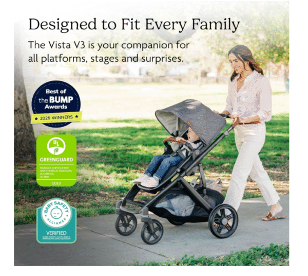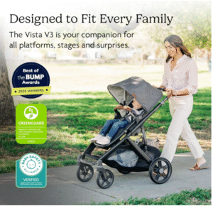 Be the first to review “UPPAbaby Vista V3 Stroller – Full-Size Single-to-Double Stroller System – Toddler Seat, Bug Shield, Rain Shield, and Storage Bag Included – Declan (Oat Mélange/Silver Frame/Chestnut Leather)”