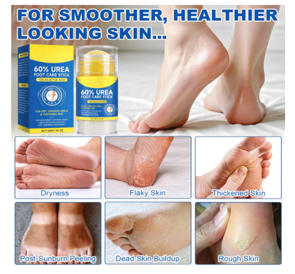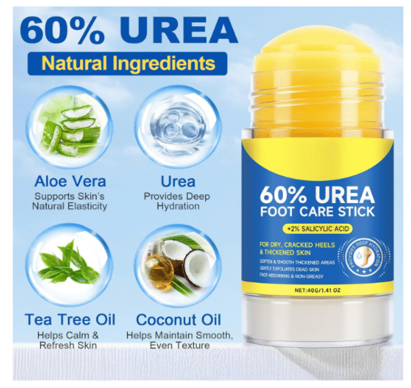 Urea Foot Care Stick – 60% Urea with 2% Salicylic Acid, 1.41oz – Moisturizer for Dry Cracked Feet,Knees,Elbows & Hands,Hydrating Cream,Callus Remover & Skin Softener,Soothes & Repairs Dry Skin